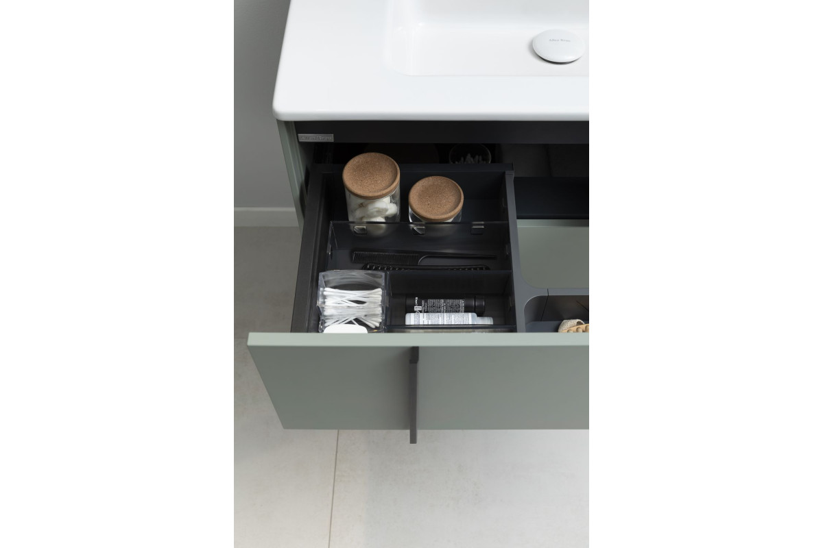 Разнообразие вариантов для хранения: система органайзеров для тумбы, выдвижные ящики,