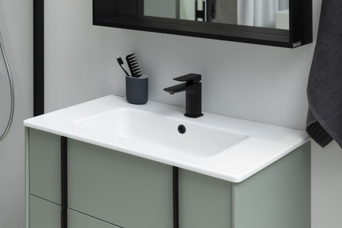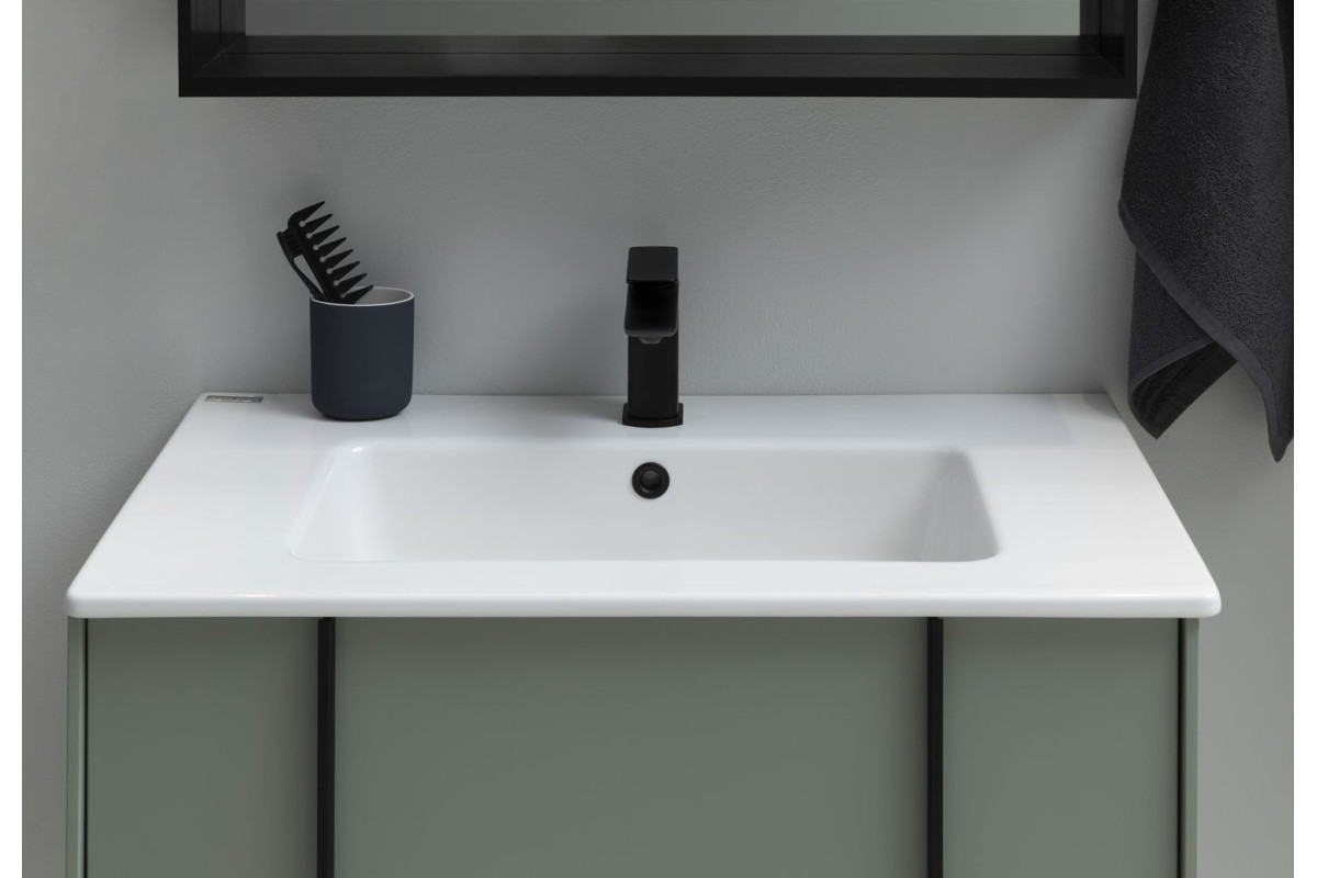 Изюминкой коллекции являются стильные и оригинальные металлические ручки, которые образуют единую линию с ножками тумбы и пенала. Ручки, опоры и зеркала коллекции REALITY выполнены из металла в цветах: черный браш или латунь браш.
