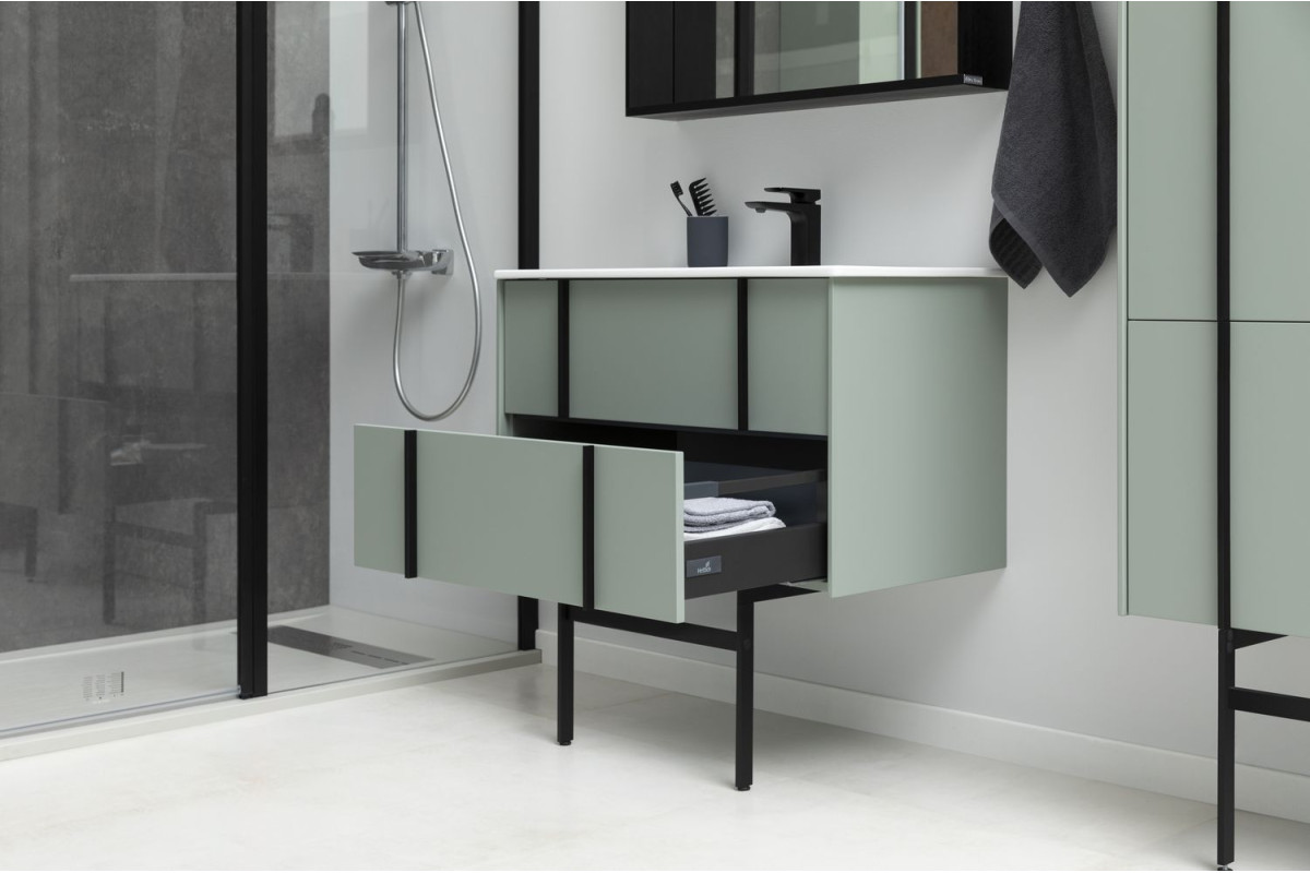 Выдвижные ящики с металлическими боковыми стенками в цвете серый металлик.