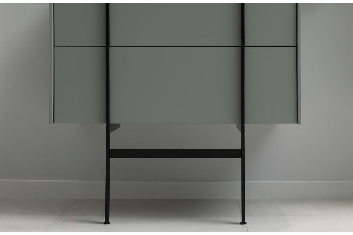 Стильные ручки и опоры выполнены из металла, имеют брашированную поверхность с нанесением цвета путем анодирования.