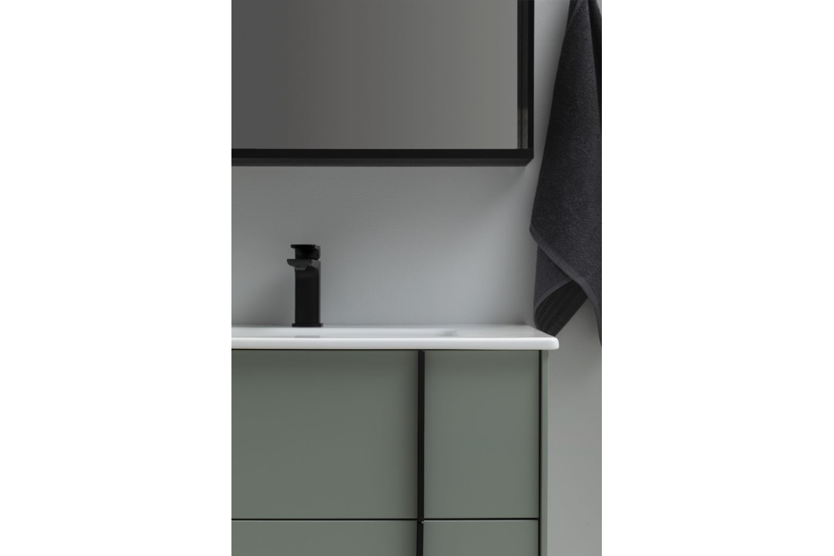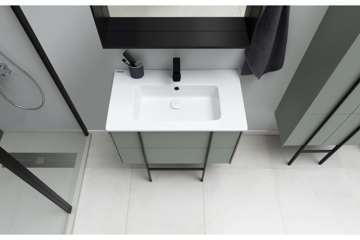 Изюминкой коллекции являются стильные и оригинальные металлические ручки, которые образуют единую линию с ножками тумбы и пенала. Ручки, опоры и зеркала коллекции REALITY выполнены из металла в цветах: черный браш или латунь браш.