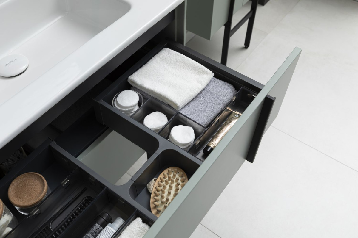Разнообразие вариантов для хранения: система органайзеров для тумбы, выдвижные ящики,
