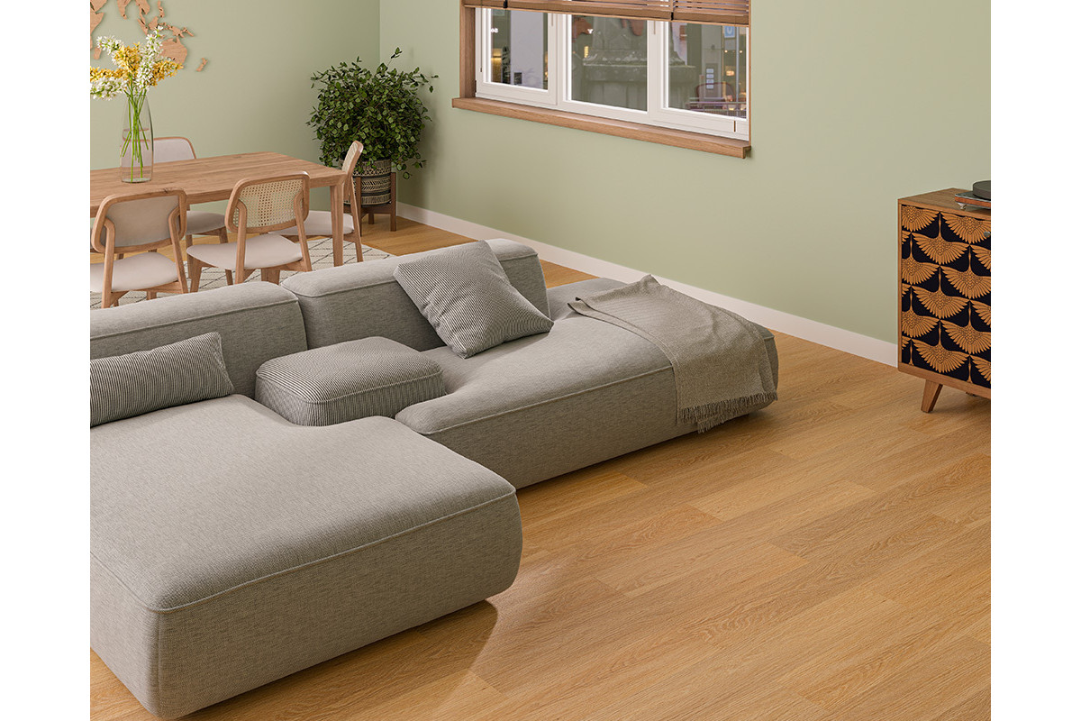 Главная особенность продукта — водостойкость. Покрытие гидрофобно, даже длительные контакты с водой не заставят панели впитать влагу. Благодаря надежной герметичной замковой системе просачивание воды к основанию исключено.