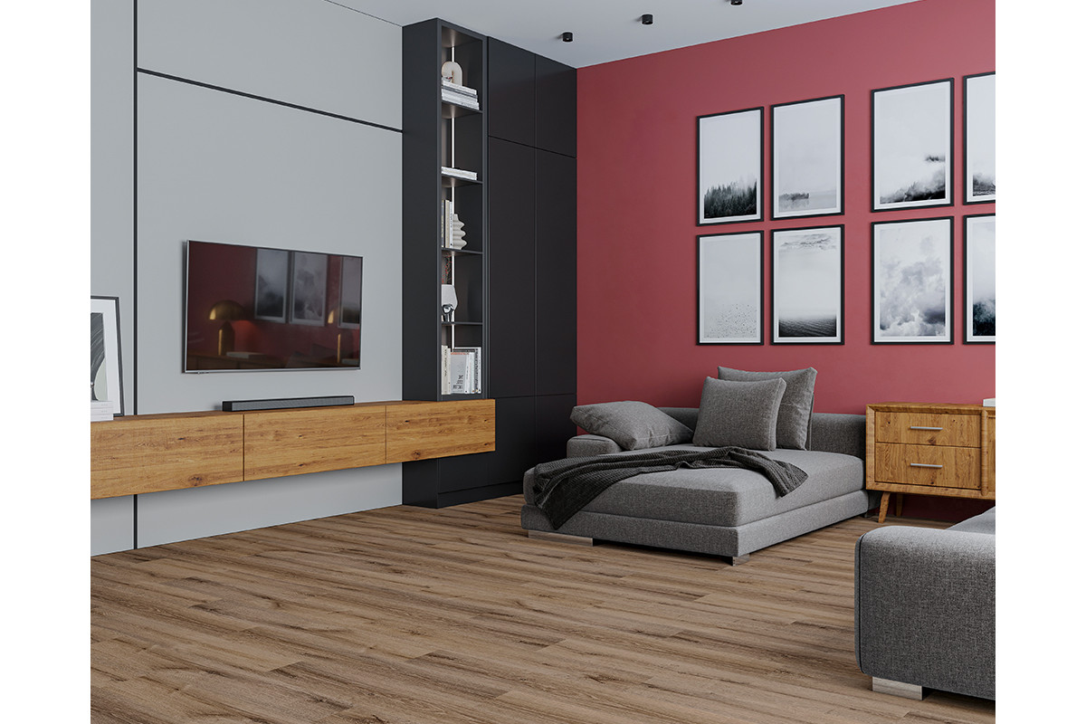 Главная особенность продукта — водостойкость. Покрытие гидрофобно, даже длительные контакты с водой не заставят панели впитать влагу. Благодаря надежной герметичной замковой системе просачивание воды к основанию исключено.