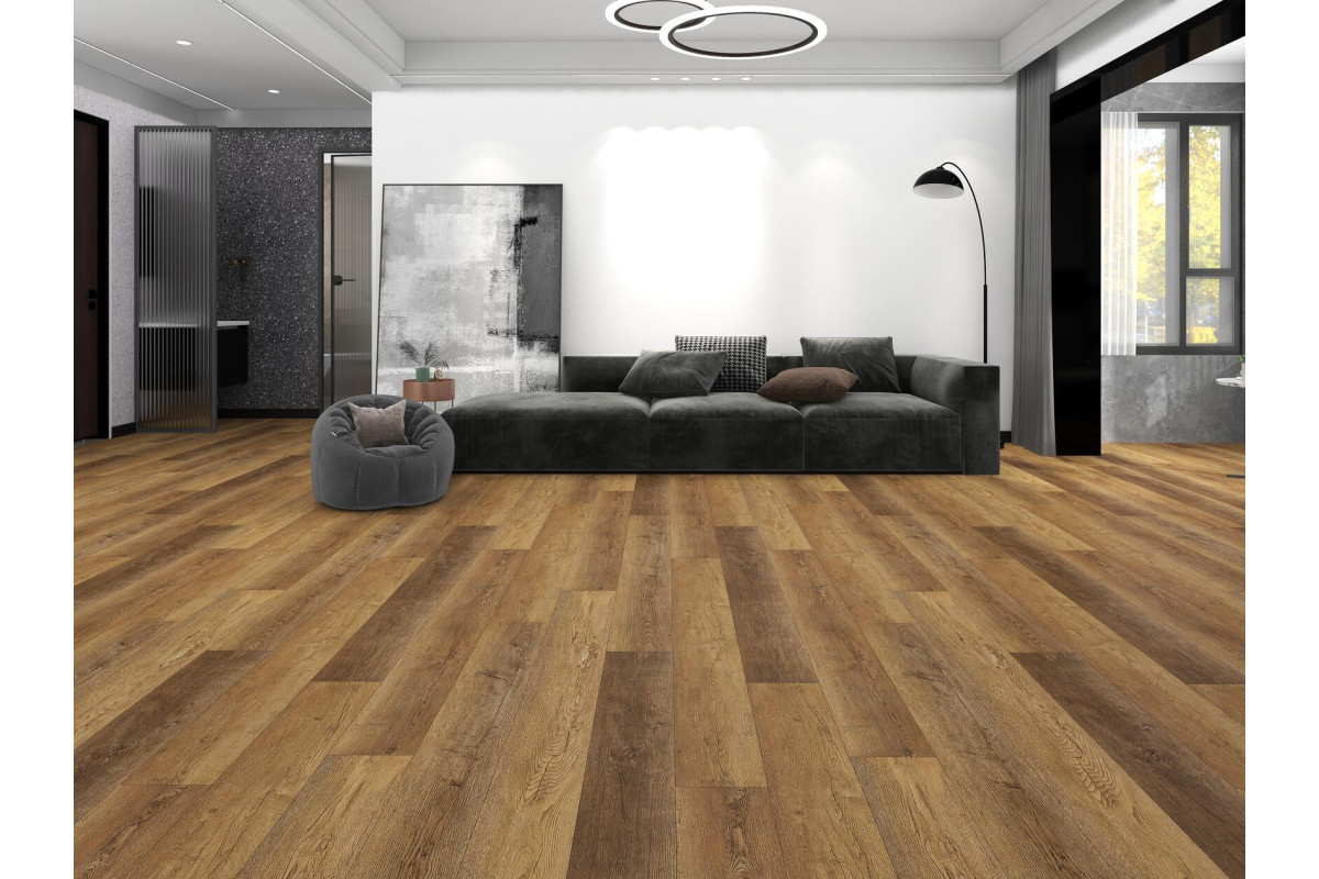 Floorwood Quantum — коллекция винилового ламината на основе SPC (каменно-полимерный композит состоит на 70-80% из перемолотого известняка и ПВХ, смешанных при высокой температуре. Не боится воды, не реагирует на перепады температур. За счет высокой плотности материала, сопоставимой с камнем, отличается безупречной прочностью замков. Поскольку в составе нет клея и смол, материал абсолютно безопасен для человека. Каменно-полимерный ламинат Floorwood Quantum со встроенной подложкой 43 класса можно использовать в домашних, коммерческих или промышленных помещениях. Возможно использование в ванных комнатах с герметизацией зазоров по периметру помещения, чтобы вода не затекала под напольное покрытие.