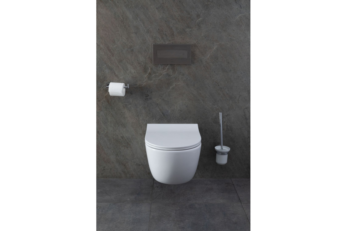 Унитаз с инсталляцией Allen Brau Priority — универсальный вариант с подвесной чашей без ободка и каскадным смывающим потоком. Монтируется конструкция прямо в стену, избавляя комнату от визуального мусора в виде коммуникаций. Сам унитаз занимает небольшое пространство у стены вместе с лаконичной кнопкой для пуска воды. В комплекте также имеется удобная крышка-сиденье в цвет изделию из дюропласта с функцией плавного опускания, то есть с микролифтом. Модель хорошо сочетается с любым цветом ванной комнаты, в том числе и с разной фактурой под древесину или камень. Что касается интерьера, то конструкция отлично смотрится в футуристических и минималистических направлениях.
