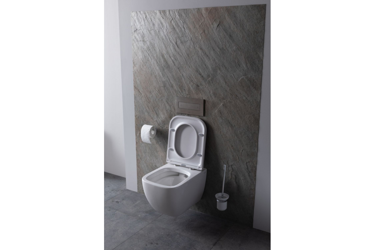 Прямоугольный подвесной унитаз с мягкими углами Allen Brau Infinity белого цвета в стиле модерн — находка для любителей строгих форм и исполнений. В комплекте с унитазом идет крышка-сиденье из дюропласта в цвет керамики самого устройства. Поверхность изделия глянцевая, а механизм смыва определяется системой инсталляции, встроенной в стену. Решение выглядит технологично и минималистично. Унитаз безободковый, с покрытием антигрязь и горизонтальным направлением выпуска. Подойдет модель для любых интерьерных решений, даже для классики, если дизайнер разработает подходящую концепцию для воплощения. Благодаря компактным размерам 360х510х350 мм будет органично смотреться как на большом пространстве, так и на малой площади санузла.
